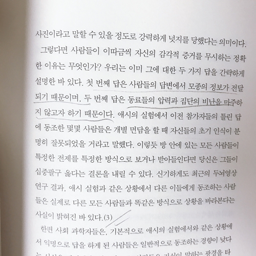 이보다 더 놀라운 것은 집단의 판단이 완전히 내면화되어 사람들이 보고할 때에도 그러한 결과를 고수한다는 사실이다.