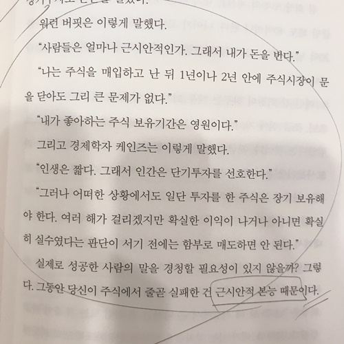 주식투자로 성공한 두 명의 천재 케인즈와 위런 버핏은 일반인들의 주식투자 실패 원인은 단기투자 때문이며, 단기투자를 하는 이유는 인간의 근시안적 본능 때문이라고 지적했다.