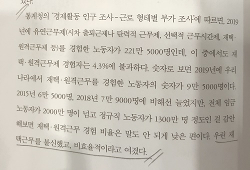 앨빈 토플러의 예측이 왜 유독 한국에서만 안 통한 것일까? 그가 예측한 재택근무는 '만나야 일이 된다'라고 보는 한국식 문화를 깰 수 없었던 것이다. 그런데 앨빈 토플러도 깨지 못한 벽을 코로나 19가 깨뜨렸다.