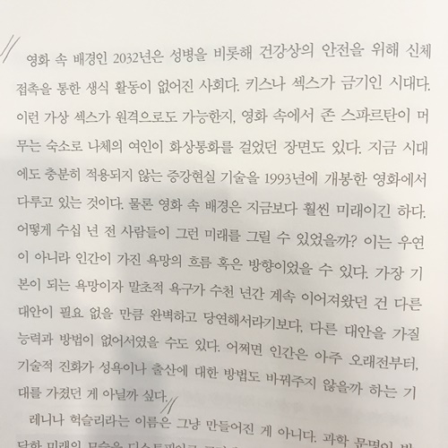 섹스라고 국한 짓지 않아도 우린 타인의 관계를 맺고 살아간다. 얼굴을 마주 보며 대화하고, 일하고, 어울린다. 악수를 비롯해 신체적 접촉도 한다.